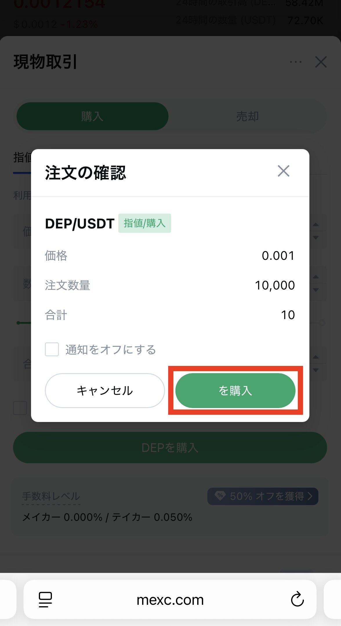 ▼購入したい価格・数量を入力し「DEPを購入」をタップ