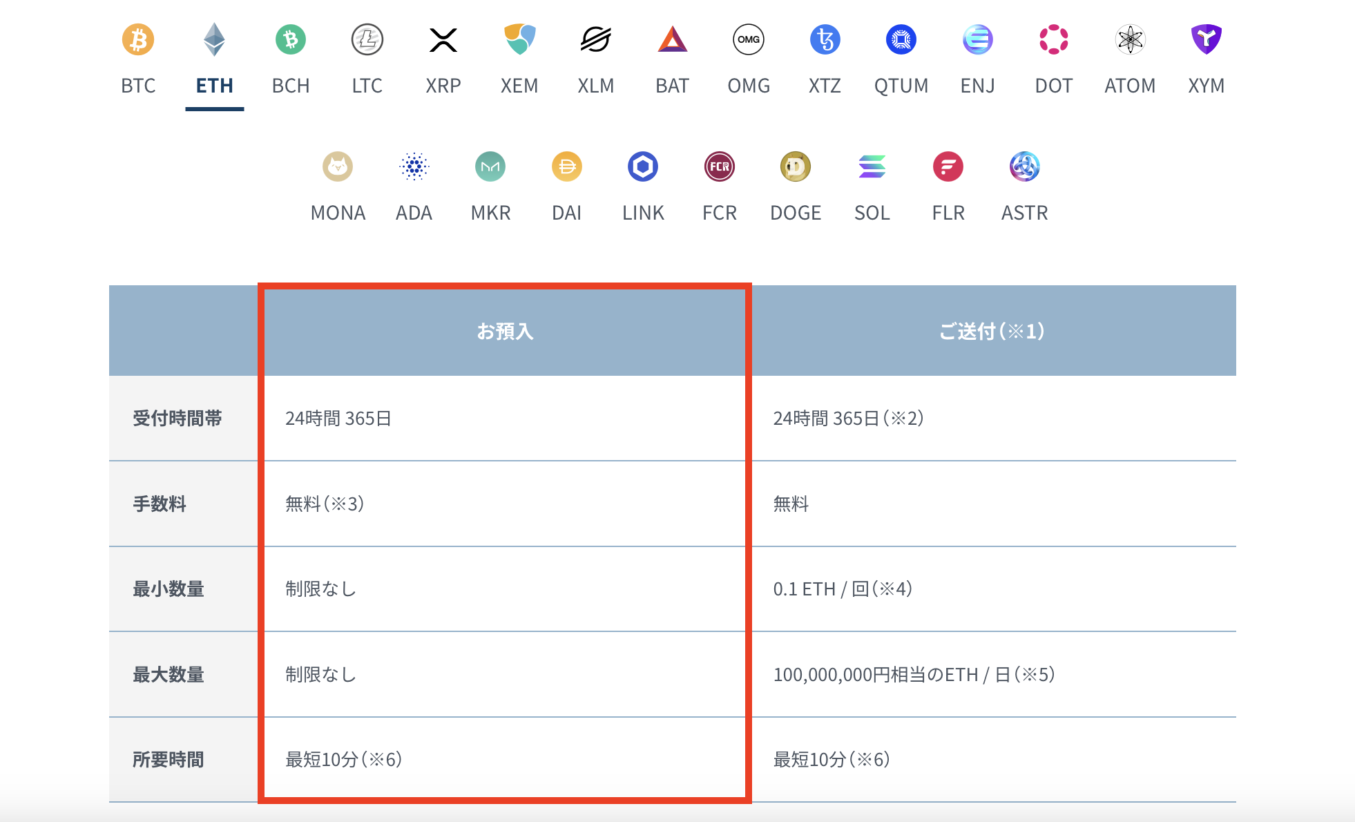 | ETHの 最低入金額 | なし | なし | 0.01ETH〜 |